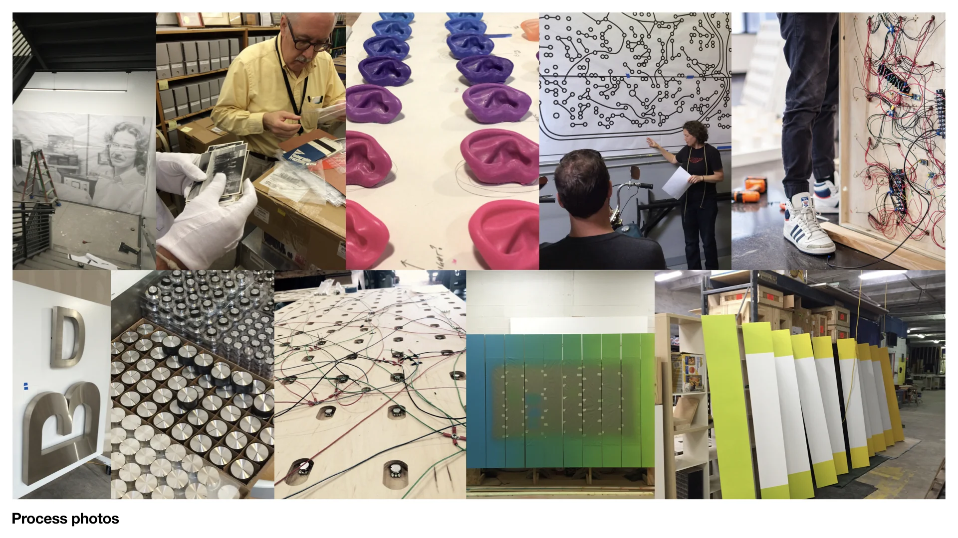 The featured works throughout the building lay on a spectrum that starts with looking at our history. By unlocking our archives and featuring insider stories of behind-the-scenes discovery, we pay homage to all that has made Dolby what it is today. An equal effort was placed on looking to our future. We included pieces inspired by Dolby’s past (taken up a notch with visual twists) and works that aim to inspire the future of Dolby to drive the next 50 years of innovation.