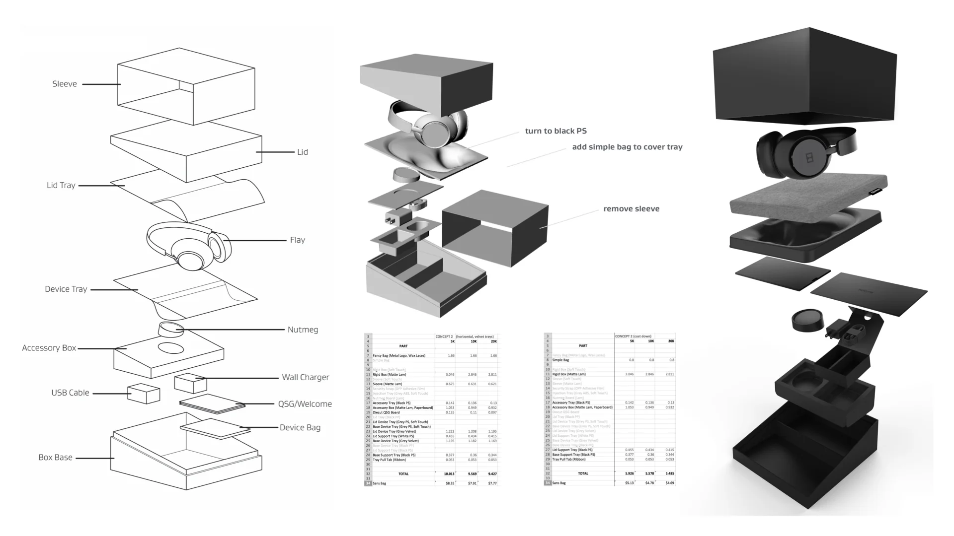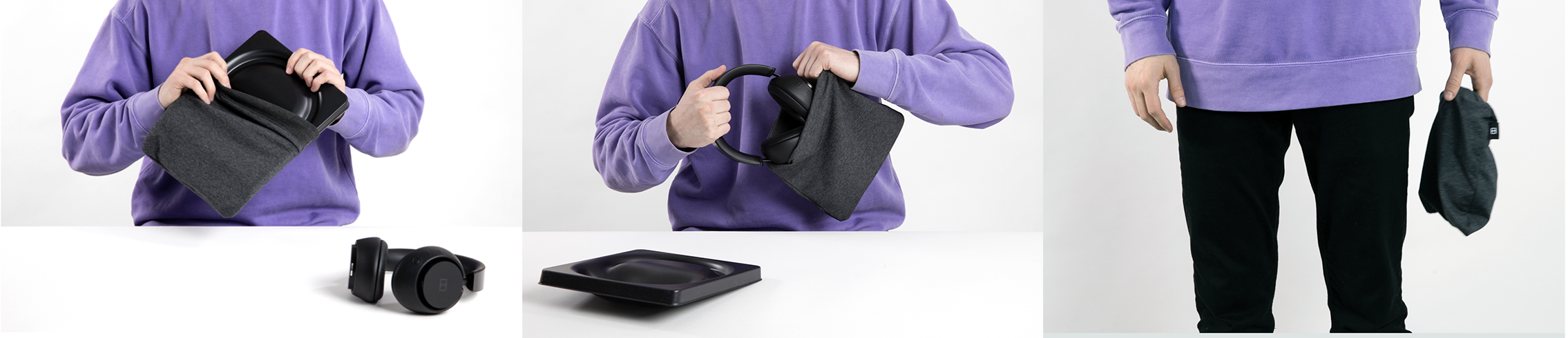 The clean, seamless qualities of the headphone extend to it's packaging. Presenting the headphone on a slanted surface pays tribute to it's unique charging stance while the soft surface beneath it underscores it's home positioning.